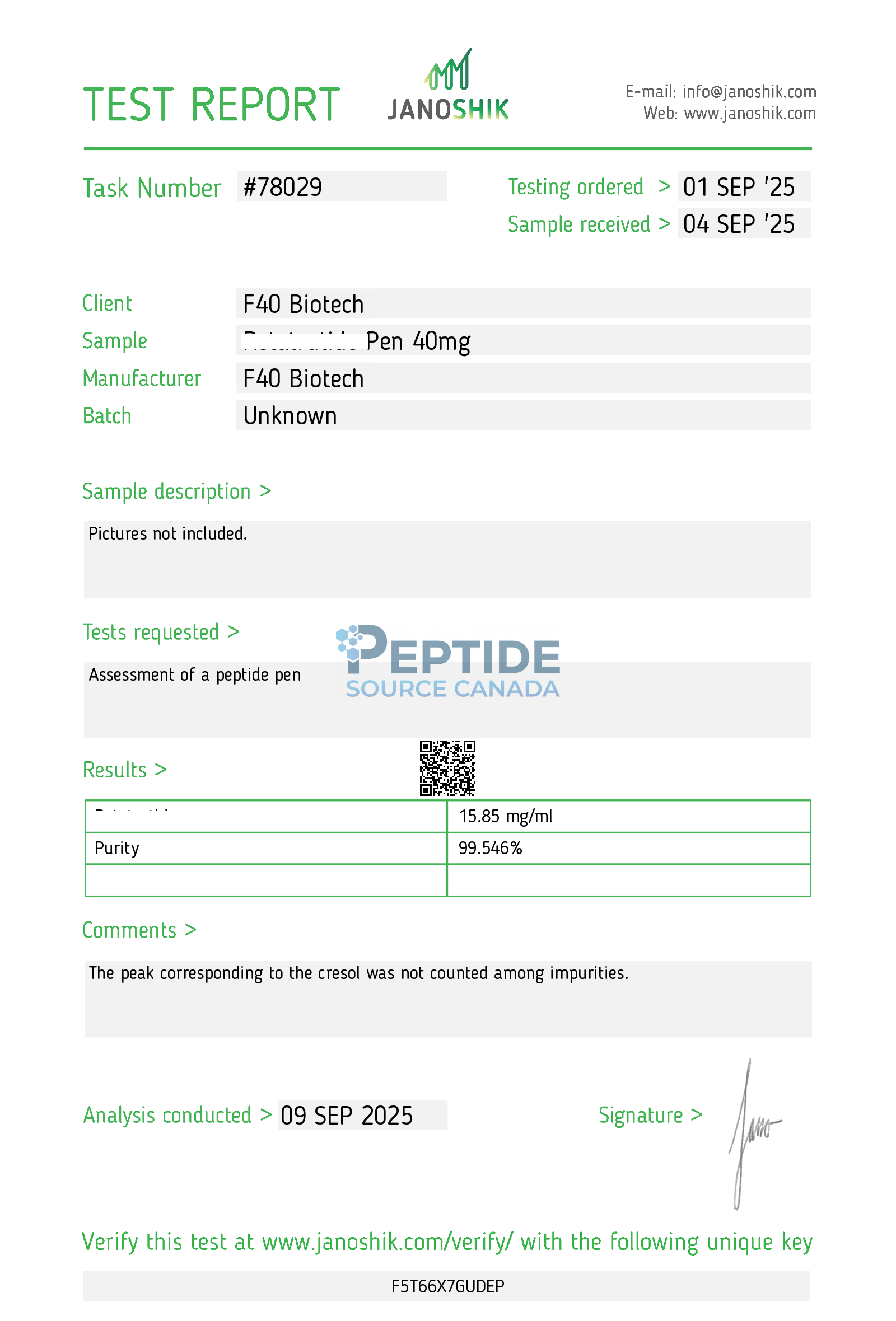 ![RTA GLP-3 [TRIPLE G] Injection Pen 40mg | Adjustable dosage – 2.5mg / 5mg / 10mg (13.33mg/mL) (Certificate of Analysis, Second Image) [ONLY ONE IN CANADA]](https://peptidesourcecanada.is/wp-content/uploads/2025/10/F40-GLP3-40MG-PEN.png)
