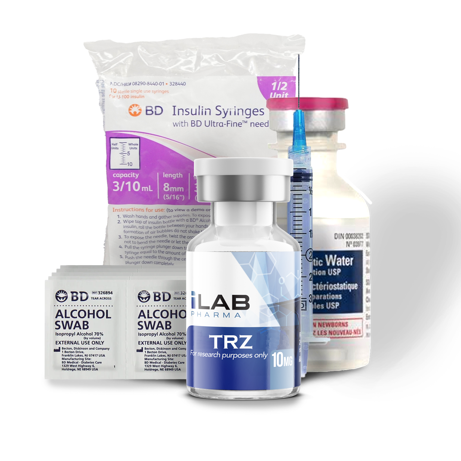 TRZ GLP-2 10mg KIT [10MG VIAL+WATER+SYRINGES+ STERILE WIPES ] COMPLETE – LAB TEST JAN/2024 99.375%